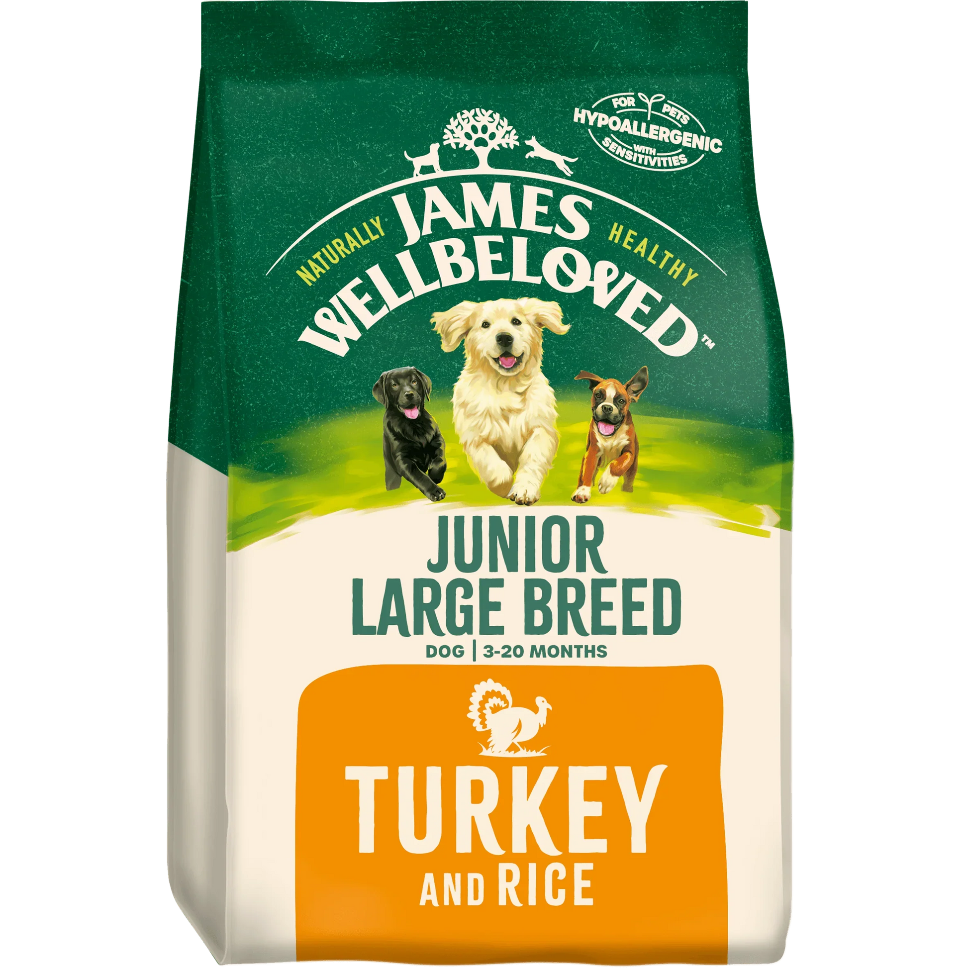 James Wellbeloved Large Breed Junior Dog Food has been specifically developed to meet the nutritional needs of dogs with an expected adult weight of 25kg and over. This complete dry food is not only hypo-allergenic but also contains carefully selected ingredients to support the digestive system and reduce the risk of ingredient and nutrient intolerances.
