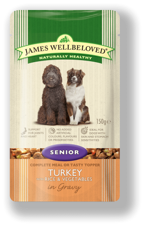 Using all our knowledge and experience, we’ve created James Wellbeloved Turkey Senior with Rice & Vegetables in Gravy. We take a handful of ingredients from nature, one source of animal protein and combine them with all the vitamins and minerals your dog needs. And all the great taste it deserves. For added peace of mind, it’s naturally hypoallergenic so less likely to cause an adverse food reaction and you will never see any added artificial colours, flavours or preservatives. Not now, not ever.