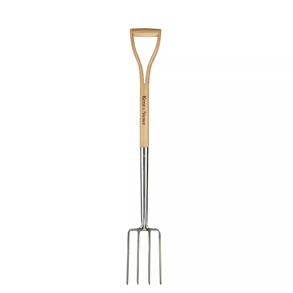 Introducing the Kent & Stowe Border Fork, a traditionally styled and high-quality gardening tool crafted from stainless steel and beautiful ash wood. Engineered with an extended shank for improved strength, this fork is designed to tackle gardening tasks with ease and efficiency. With its narrow head and high-quality stainless steel prongs, it minimizes soil adhesion and allows for close space working. Available Size L 104cm.