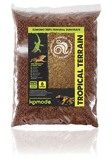 Introducing Komodo Tropical Terrain Substrate in a convenient 6-liter size, offering 100% natural reptile substrate for your terrarium needs.
