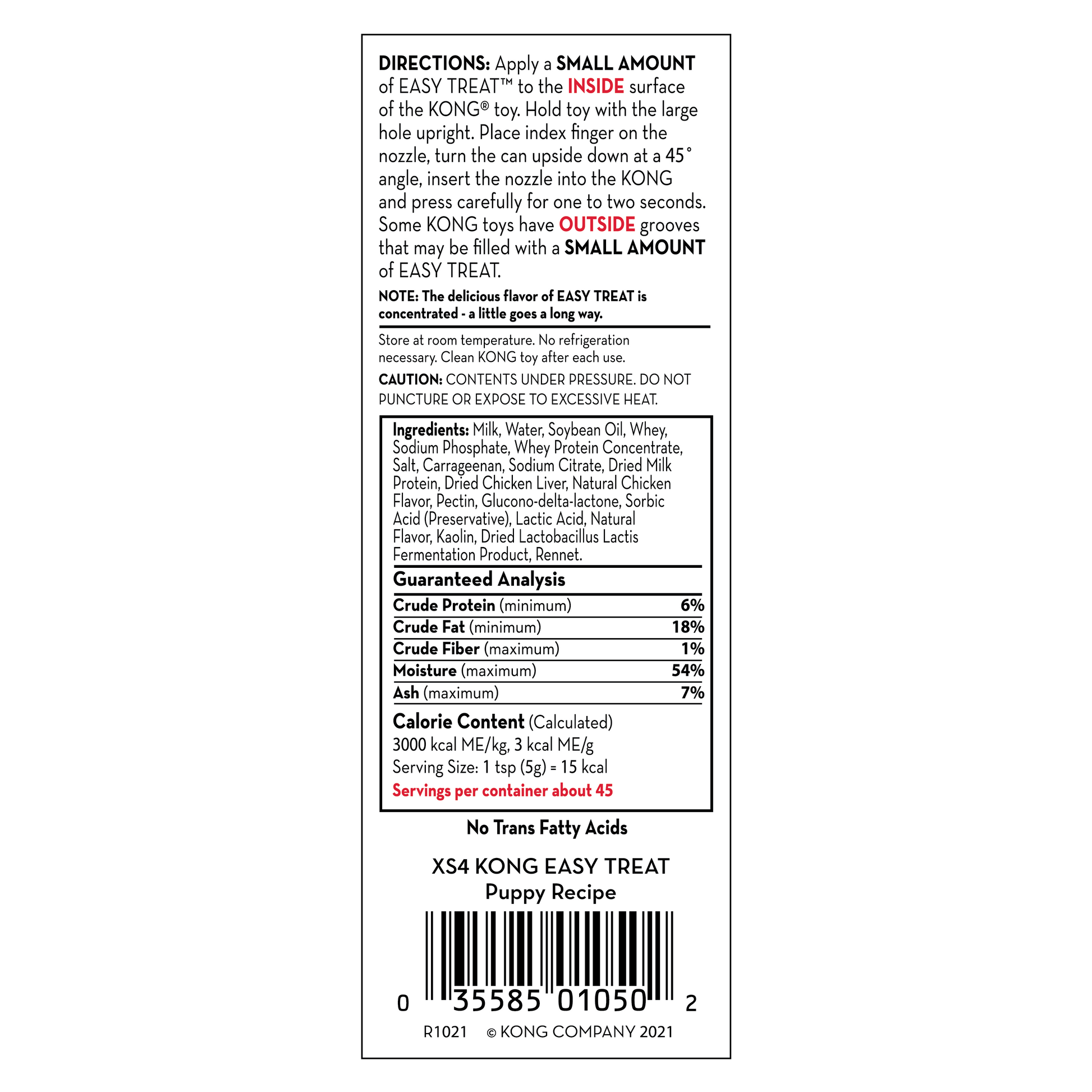Choose KONG Puppy Easy Treat™ for a delicious and no-mess treat solution that meets the specific needs of your growing puppy. Whether used as a standalone treat or paired with a stuffed Puppy KONG, this treat provides both enjoyment and mental stimulation for your little canine companion.