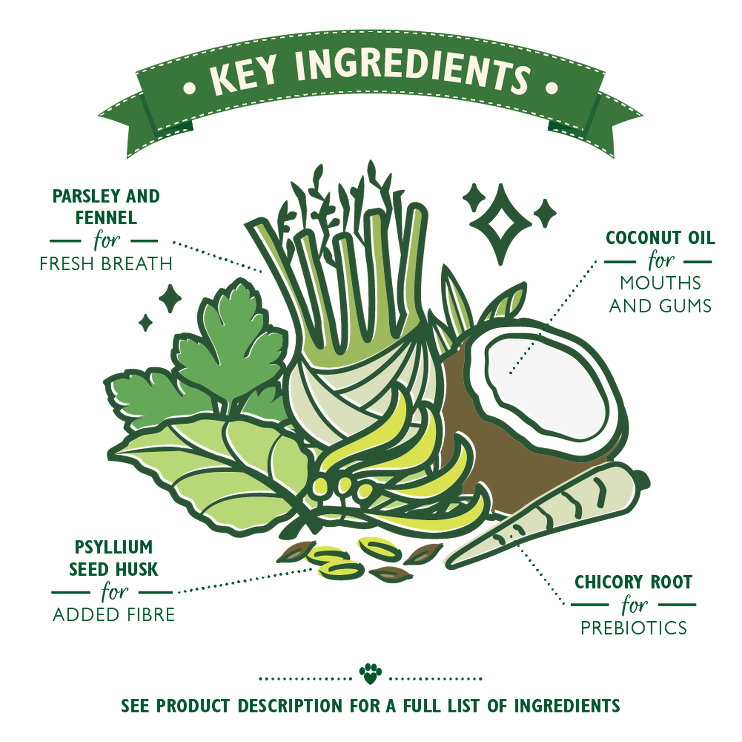 At Lily's Kitchen, we believe in providing proper food for pets, even when it comes to dental chews. Dogs ingest their dental chew, so it's essential that it's gentle on their stomach while being effective for their teeth. Woofbrush is expertly crafted with guidance from our pet dental expert, using natural ingredients like parsley, coconut oil, and fennel for a thorough clean without unnecessary additives.