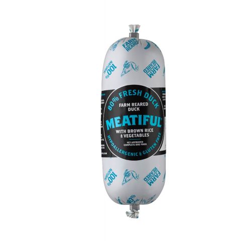 Meatiful Sausage with Farm Reared Duck, Brown Rice, and Carrots – the ultimate complete wet dog food that is 100% Natural, 100% Gluten-Free, and 100% Delicious. We take pride in crafting this dog food with only the finest ingredients, ensuring that your furry friend gets the best nutrition and taste in every bite.