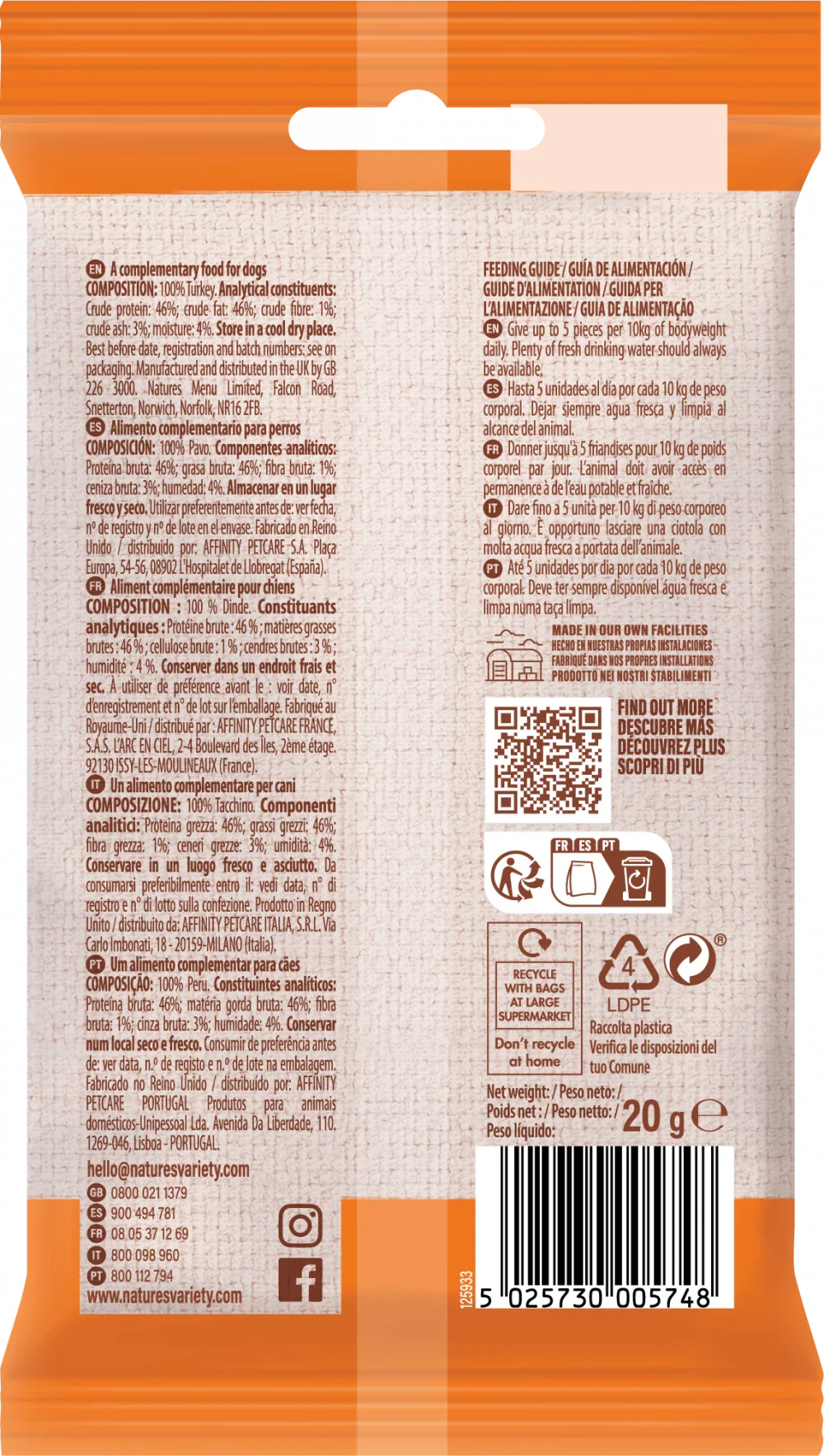 Nature's Variety Freeze Dried Meat Bites 100% Turkey For Puppy and Adult Dogs 20g