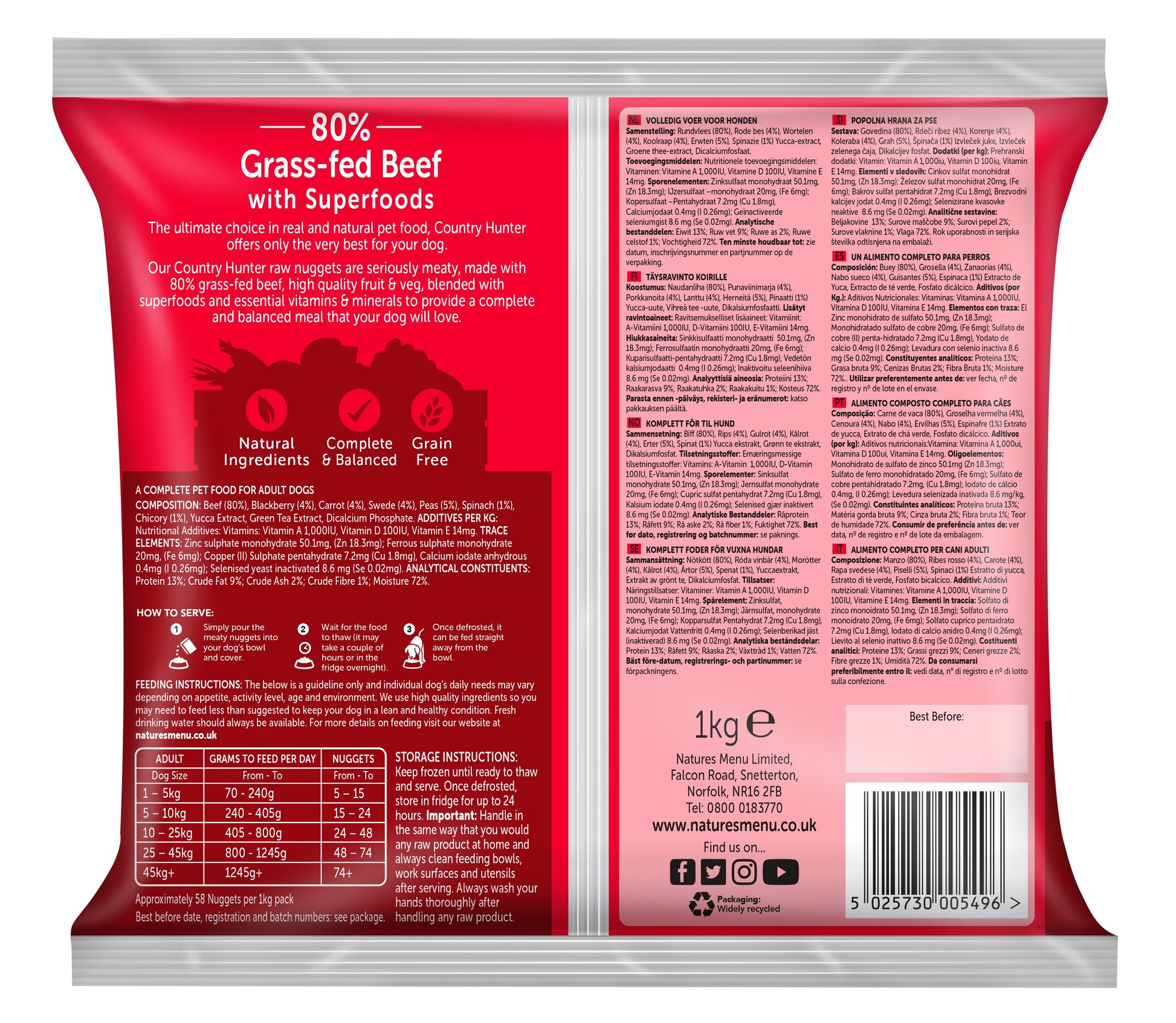 Natures Menu Raw Dog Food Country Hunter Nuggets Beef 1kg