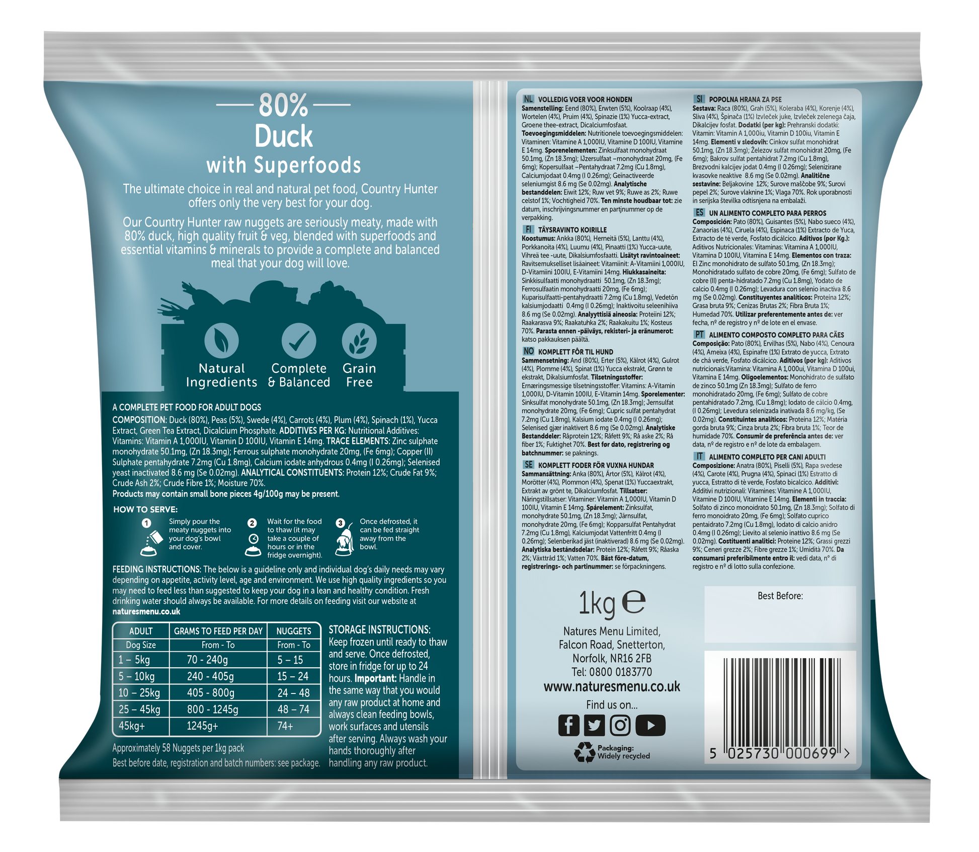 Natures Menu Raw Dog Food Country Hunter Nuggets Duck 1kg