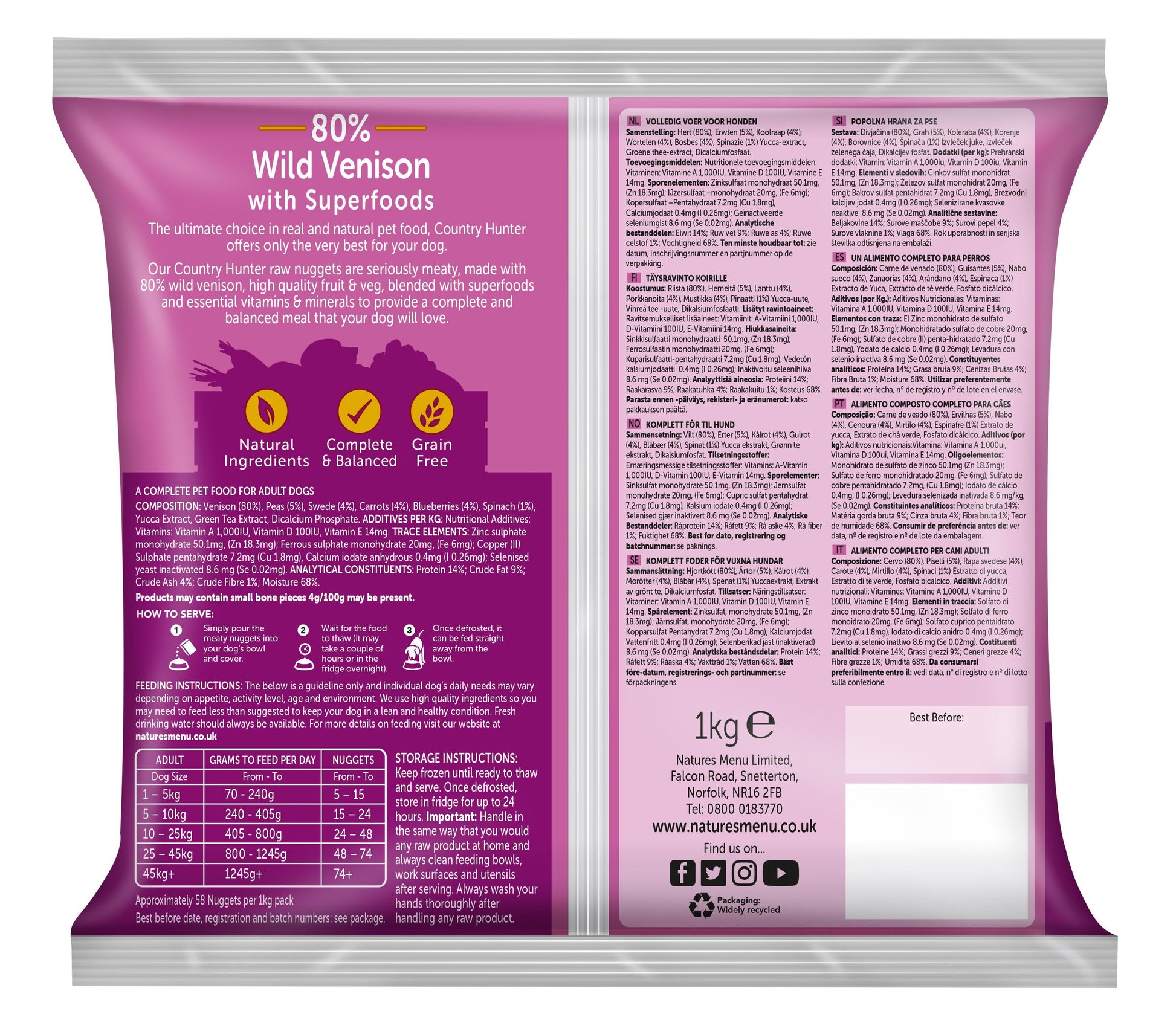 Natures Menu Raw Dog Food Country Hunter Nuggets Wild Venison 1kg