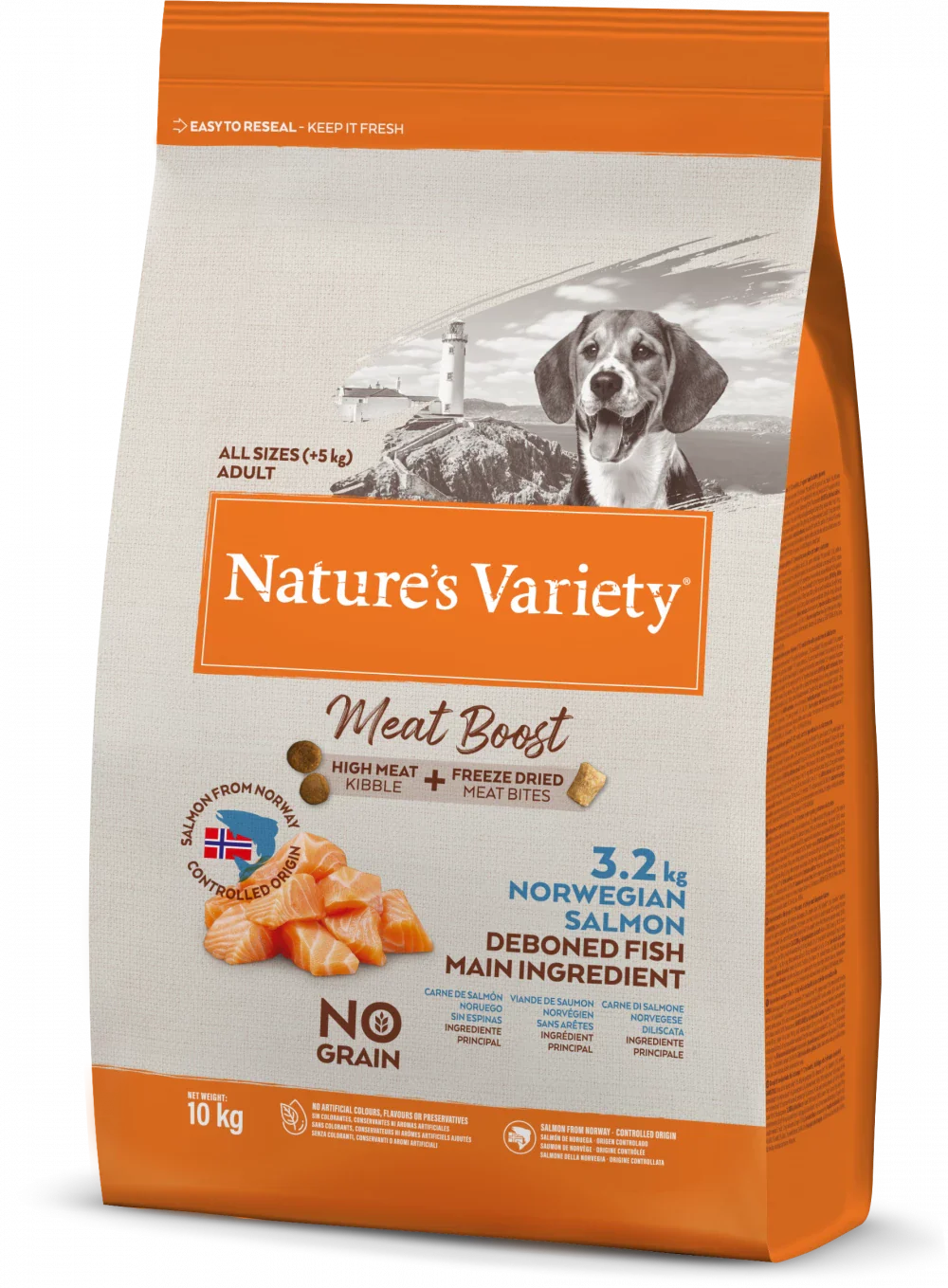 Nature's Variety Meat Boost Norwegian Salmon Adult Dry Dog Food 10kg