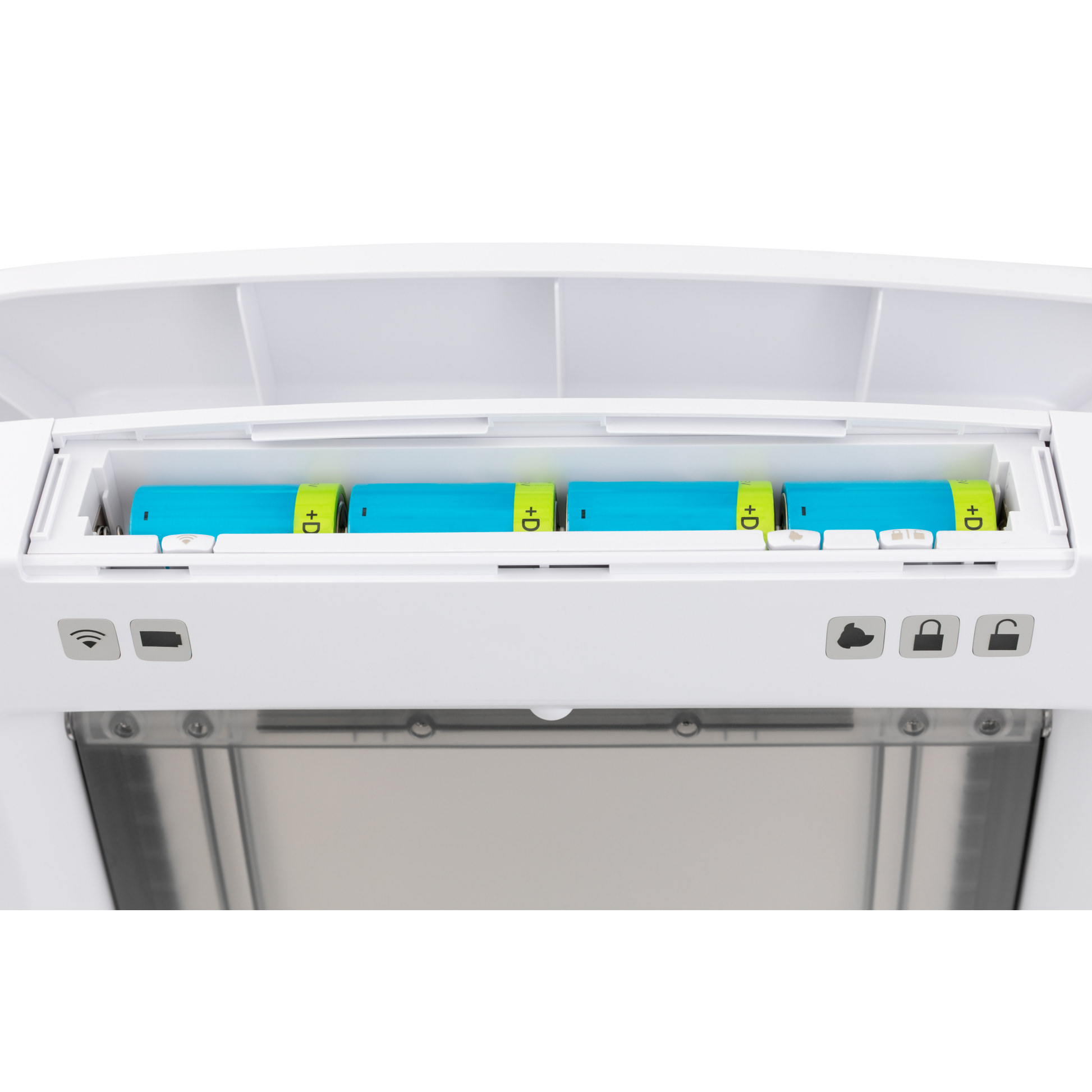 The Medium SmartDoor also offers a microchip feature for cats, providing keyless entry. Pets without a key or microchip won't be able to enter, ensuring unwanted visitors stay out. You can set individual schedules for your pets through the My PetSafe® app, allowing access at specific times. Receive notifications on your phone or smartwatch about your pet's activities, including door usage and lock status. During storms, remotely activate the multi-point lock to keep your pet safe indoors. The pet door flap features dynamic weather sealing for energy efficiency and privacy, made with durable plastic. Available in Medium and Large sizes, the SmartDoor is powered by batteries or a Wall Adaptor (sold separately) and requires a high-speed Wi-Fi connection. Installation is straightforward and can be done as a weekend project. Trust PetSafe® to prioritize your pet's health, safety, and happiness with the SmartDoor Connected Pet Door.