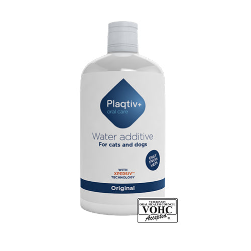 Plaqtiv+® Water Additive offers a hassle-free and effective dental care solution for both dogs and cats. By simply adding it to your pet's drinking water, you can take proactive steps in maintaining their dental health. This scientifically backed formula not only reduces tartar buildup but also contributes to overall oral well-being and fresher breath.