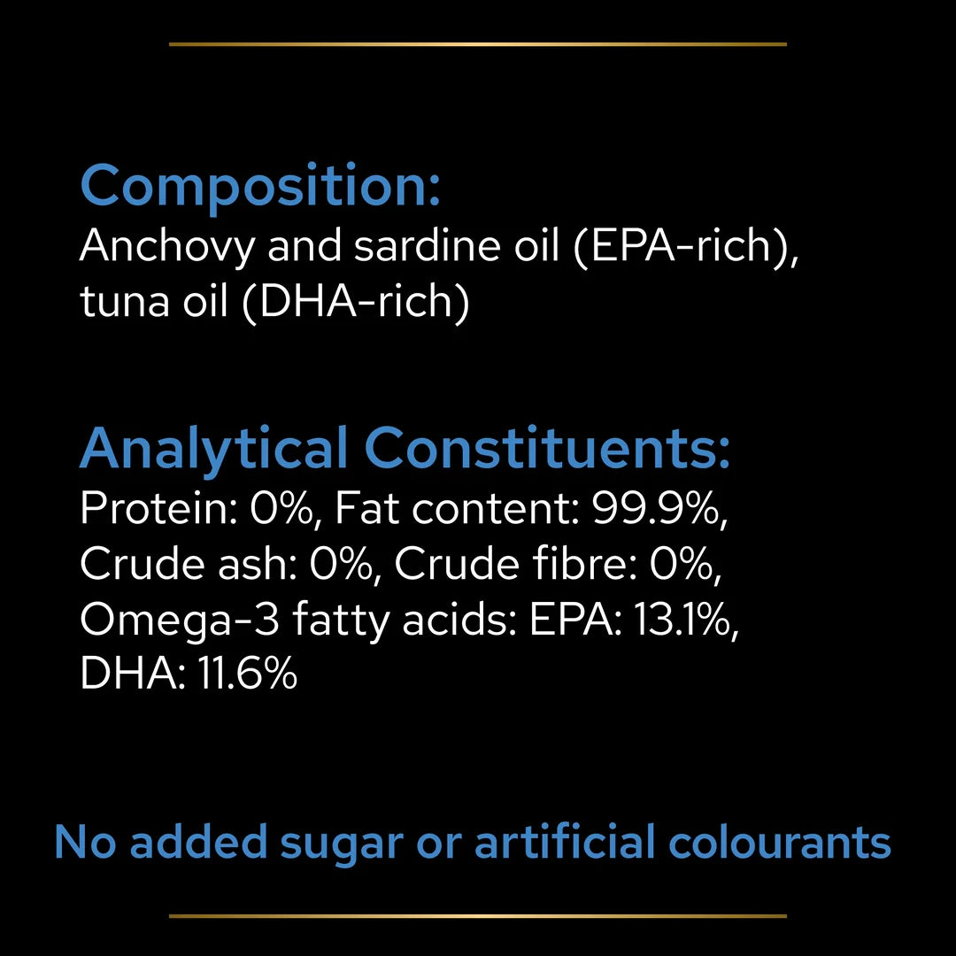 - 87% of dogs displayed calmer behaviour after 3 months, as observed in an internal Purina study conducted in the United States in 2012 on 24 dogs evaluating the impact of fish oils on dog behaviour.