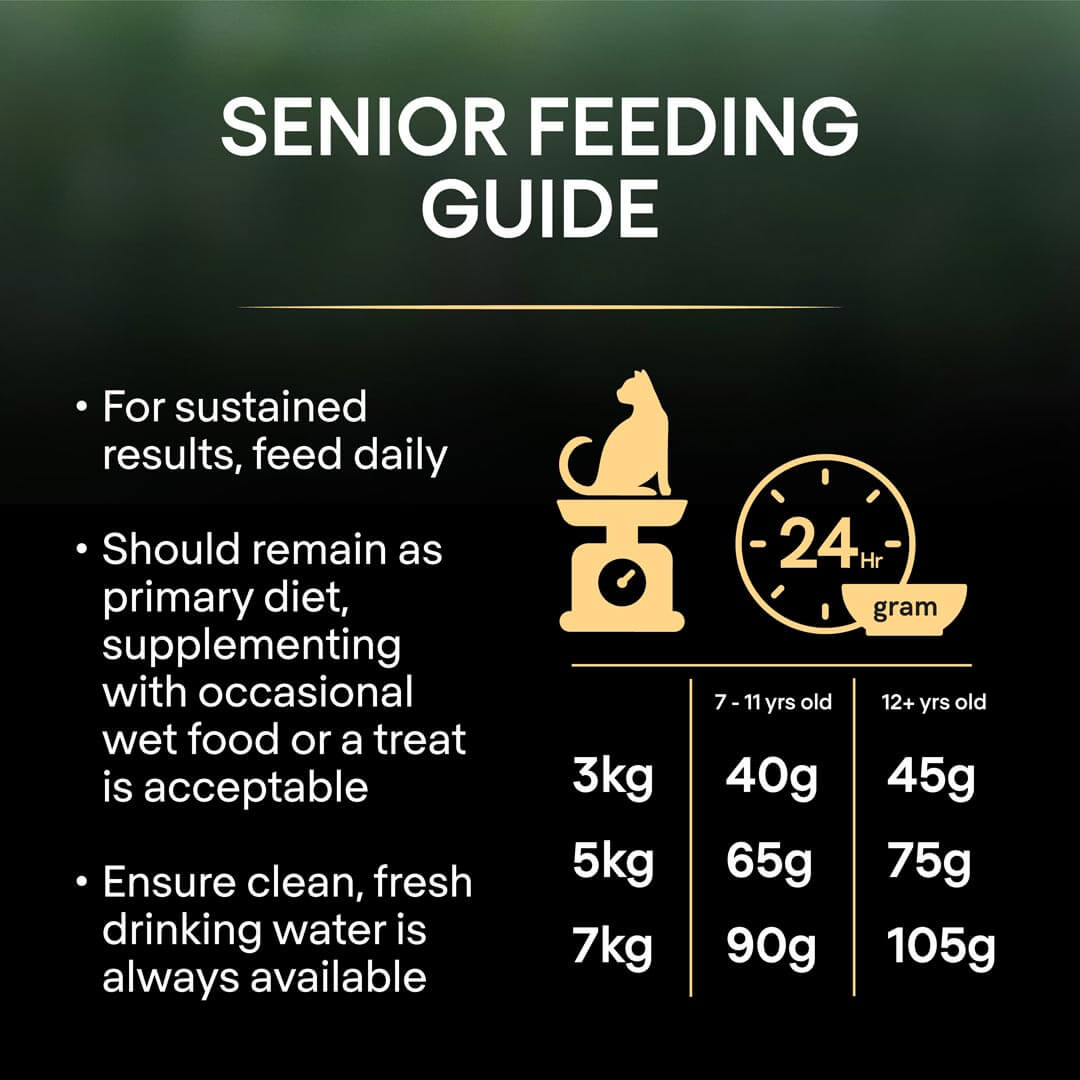 Cat Weight: 3kg, Total daily amount 7 to 11 yrs: 40g