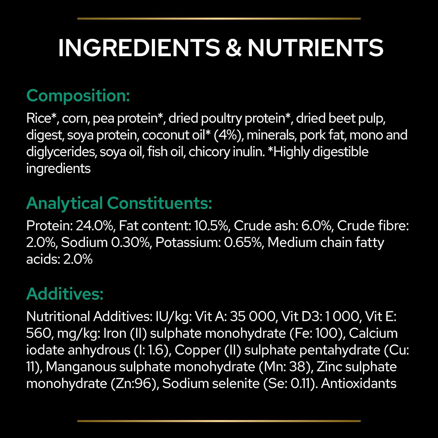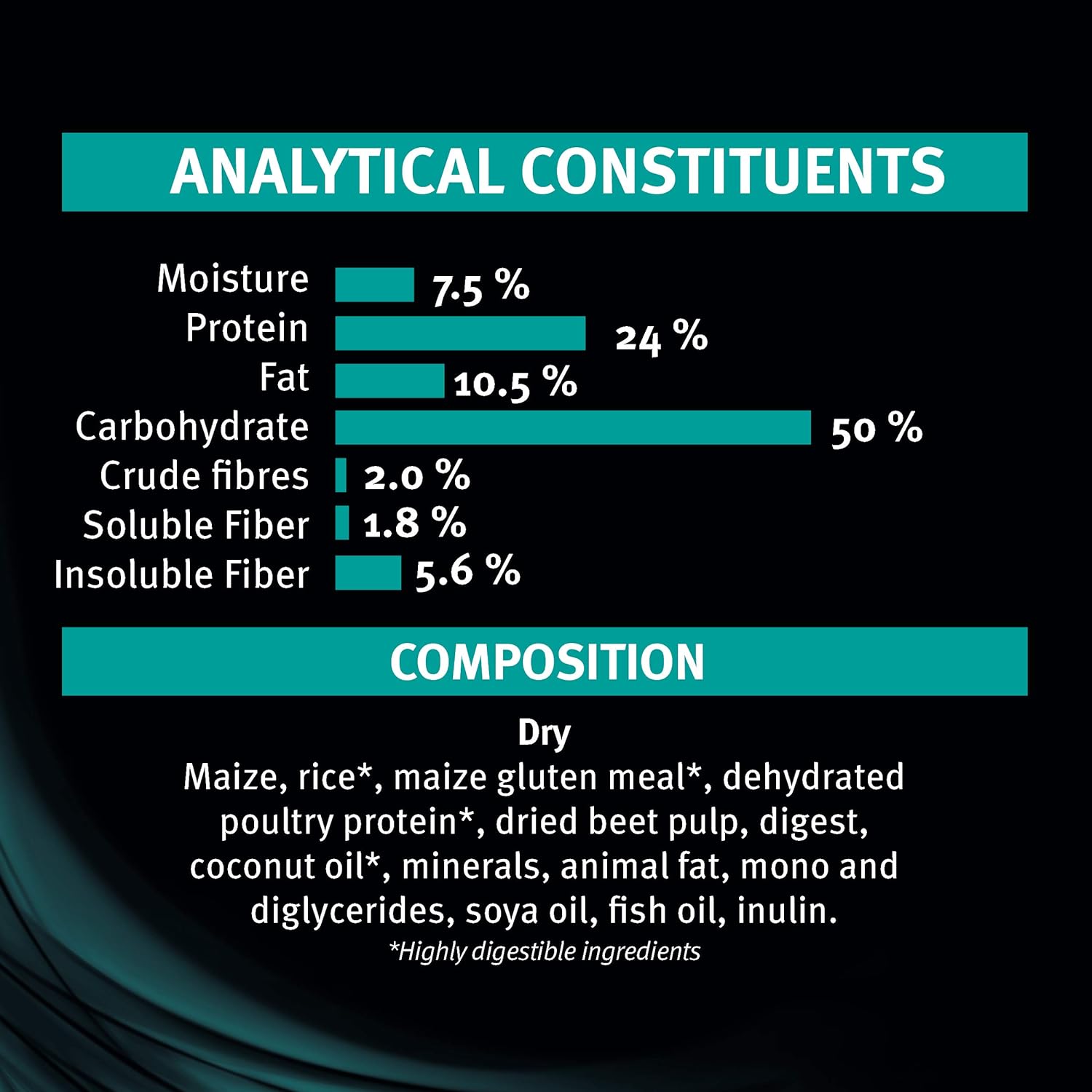 Pro Plan Veterinary Diets EN Gastrointestinal Dry Dog Food is a complete dietetic pet food designed for both puppies and adult dogs. It features a highly digestible, low-fiber formulation specifically created to compensate for conditions such as maldigestion and exocrine pancreatic insufficiency.