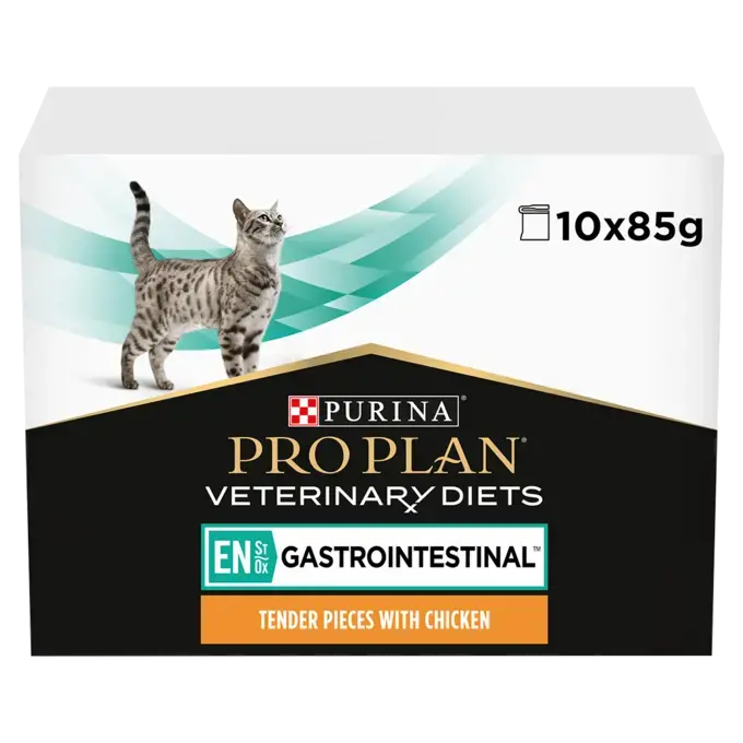Ideal for cats with sensitive stomachs or digestive issues, Pro Plan Veterinary Diets EN Gastrointestinal provides a balanced blend of nutrients that support overall health while being gentle on the digestive tract. The wet food format makes it palatable and easy for cats to consume, aiding in hydration and digestive health. Always consult with your veterinarian before starting any new diet to ensure it is suitable for your cat's specific health needs.