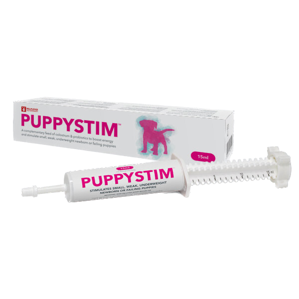 Puppystim™ is an invaluable nutritional supplement designed for breeders and veterinarians, offering a unique blend of probiotics and colostrum to provide a readily available source of energy for small, weak, underweight newborn or failing puppies.