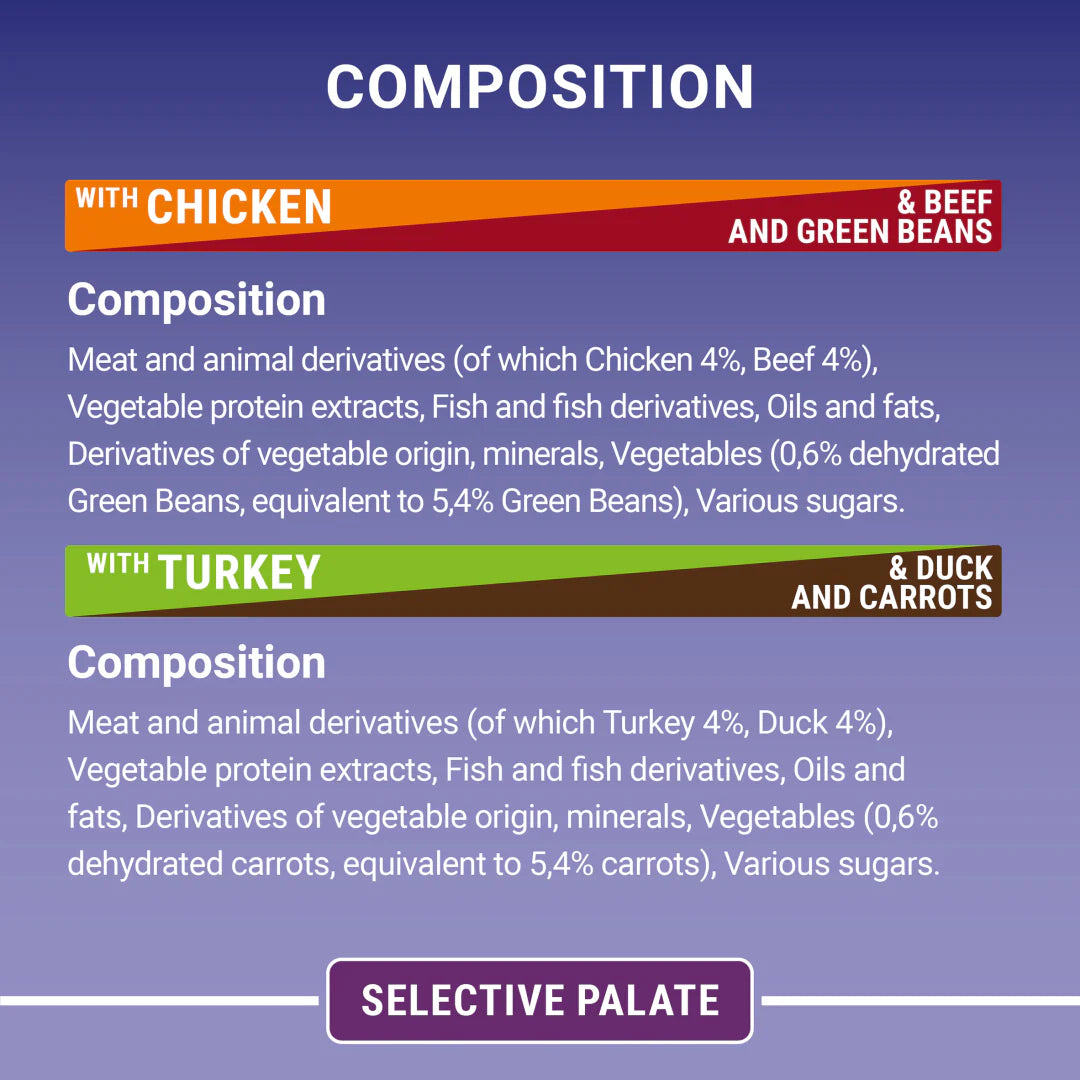 Experience the excellence of PURINA ONE wet meals, meticulously crafted to provide your cat with complete and balanced nutrition. These recipes feature tender pieces, delicately cut into mini filets, combined with flavorful vegetables in a delicious gravy, offering both high-quality nutrition and irresistible taste.