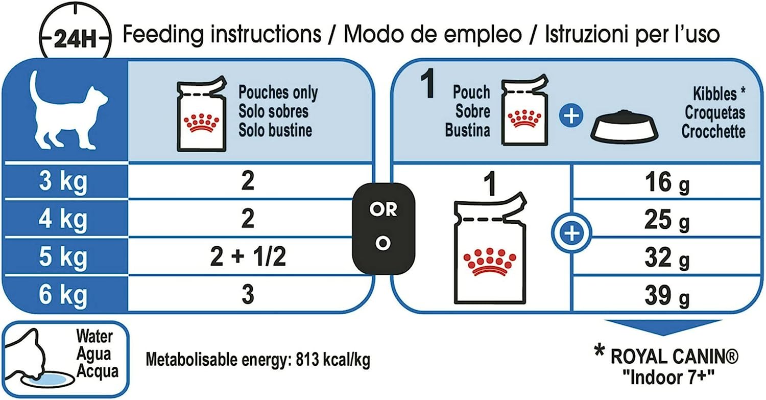 To cater to your cat's individual preferences, ROYAL CANIN® Indoor Sterilised in Jelly is also available in jelly or dry food with crunchy kibble. If you prefer mixed feeding, simply follow the feeding guidelines to ensure your cat receives a proper amount of both wet and dry food for optimal benefits.