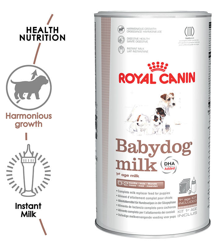 ROYAL CANIN® Babydog Milk is designed to support your puppy's growth during its early weeks, from birth to weaning. With high energy and protein levels, this product is formulated to mimic maternal milk as closely as possible, supporting steady and harmonious growth. The formula dissolves instantly, leaving no sediment and is suitable for first-age puppies.