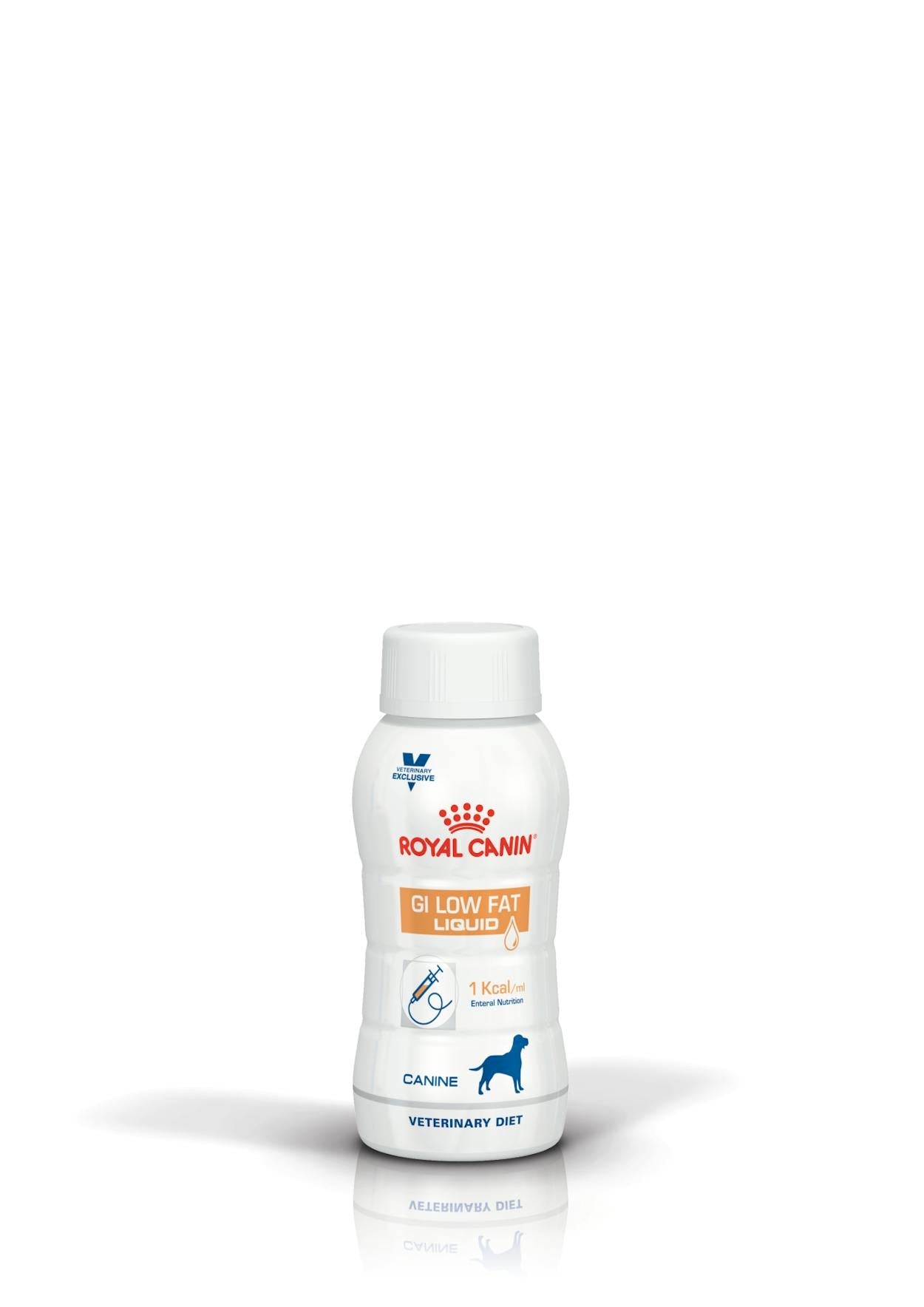 Royal Canin GI Low Fat Liquid Wet Dog Food, available in a 200ml container, is specially formulated for dogs with gastrointestinal issues who require a low-fat diet. This liquid diet provides essential nutrients and energy while minimizing fat intake to support digestive health.