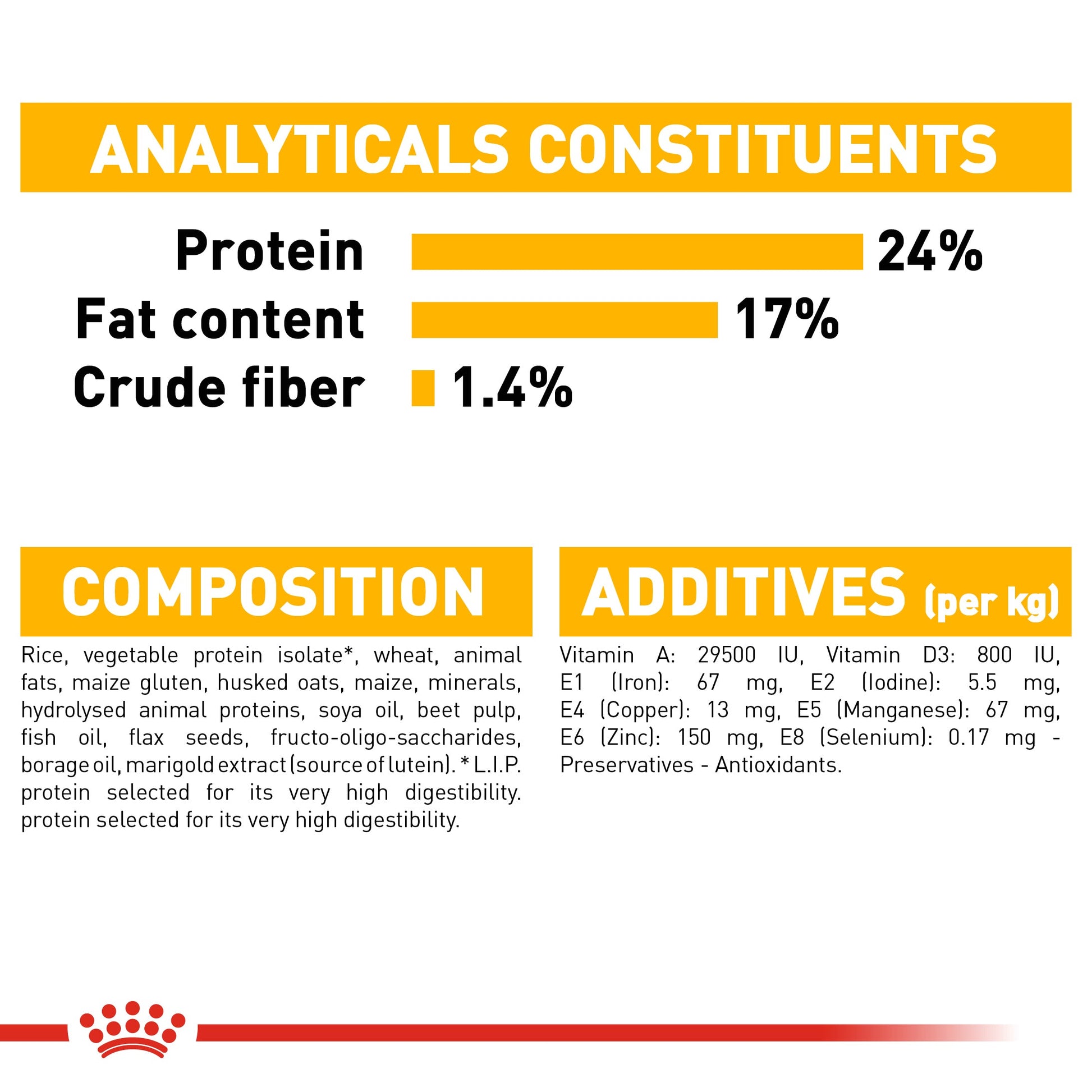 The effectiveness of this product has been scientifically proven, with tests conducted at the Royal Canin kennels resulting in 91% of owners being satisfied with its results after feeding the food to their dogs for two months.