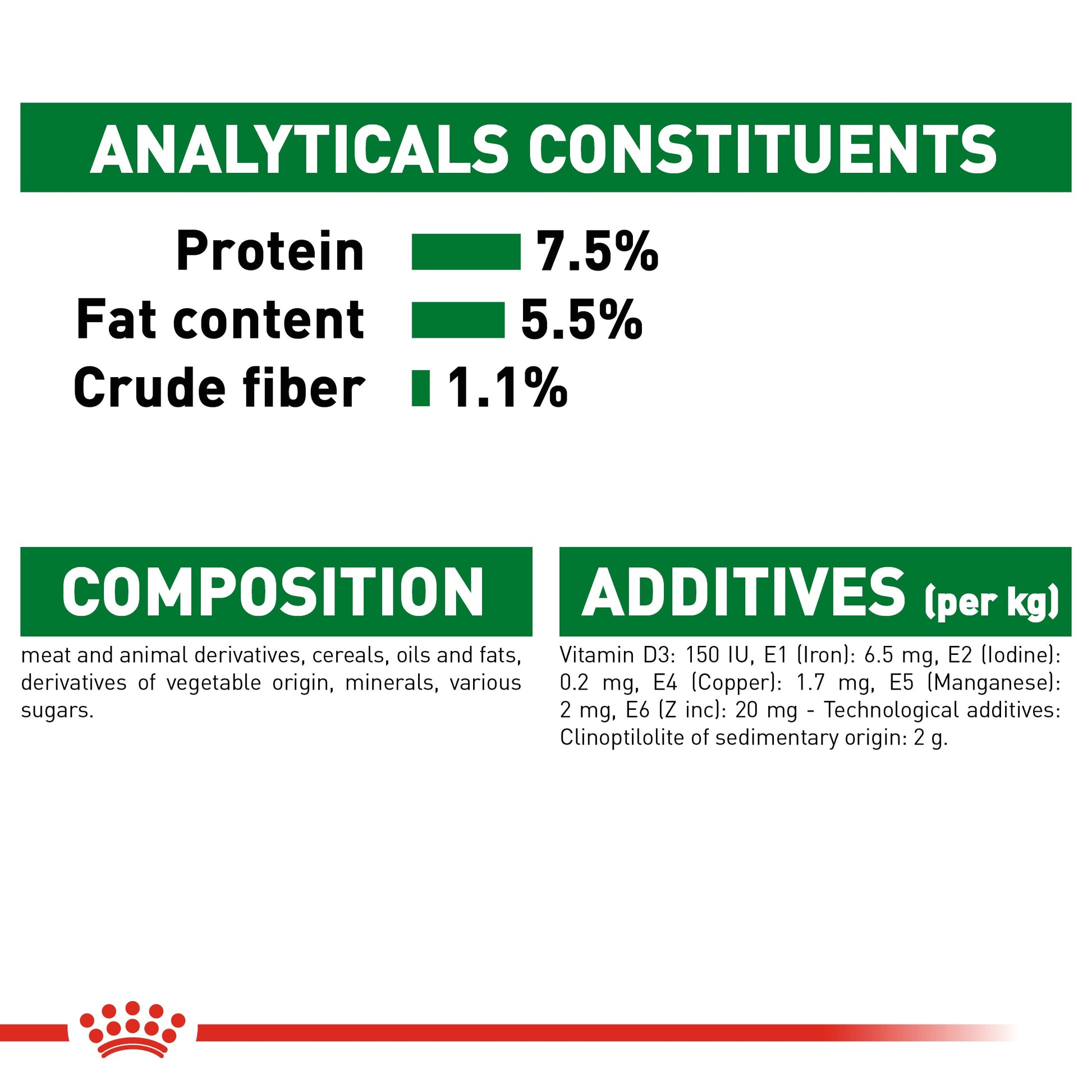 The specific nutrients in ROYAL CANIN® Mini Adult in Gravy are designed to support your dog's digestive health and maintain a good balance of intestinal flora. The carefully adapted energy content helps to maintain an ideal weight in small breed dogs, which is important during their adult years as their metabolism slows down. Moreover, this formula also contains nutrients that help support healthy skin and coat condition, enriched with EPA and DHA Omega-3 fatty acids that are beneficial for the maintenance of healthy bones and joints.