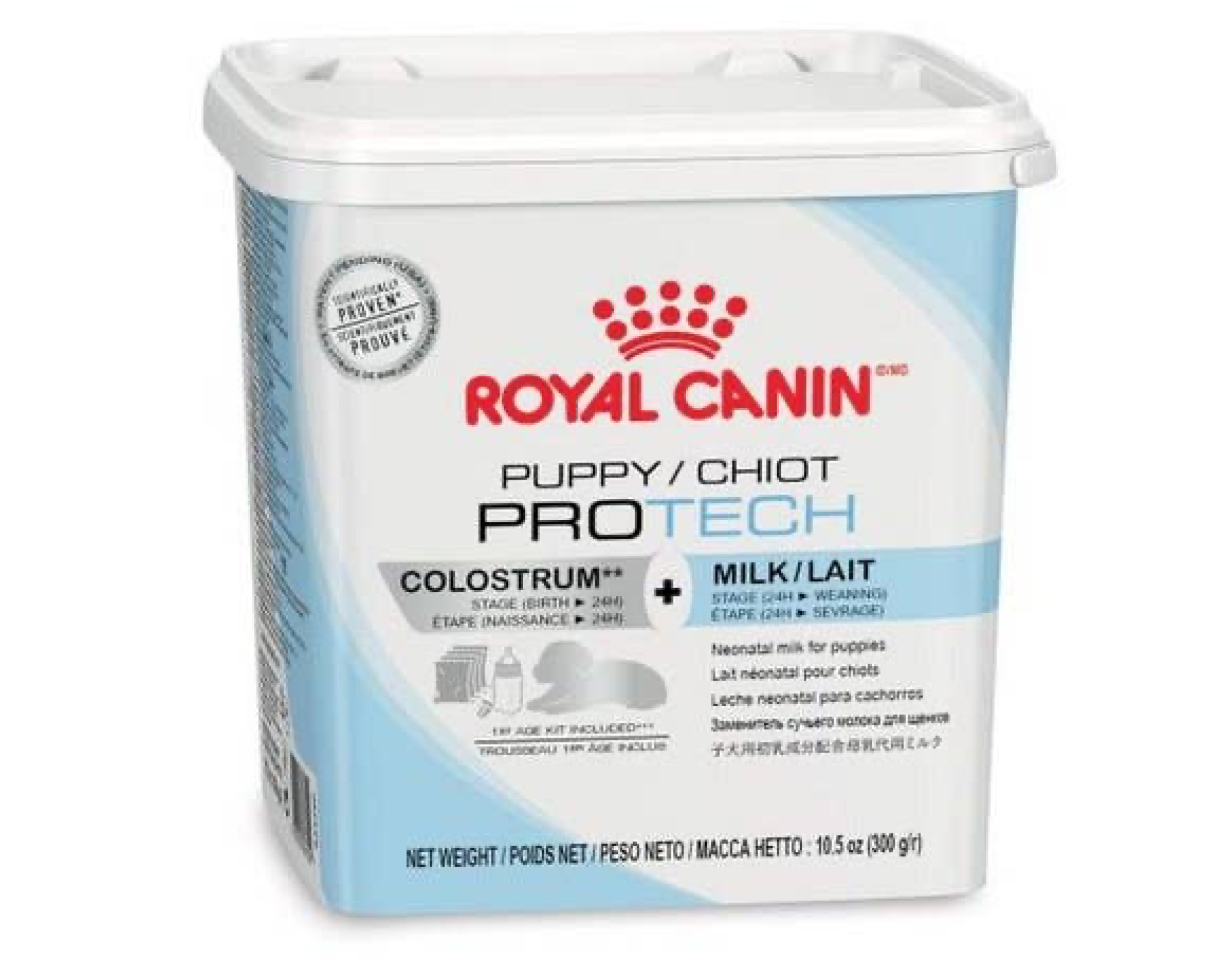 ROYAL CANIN® Puppy ProTech Milk is a comprehensive colostrum supplement and milk replacer designed specifically for puppies from birth until weaning.