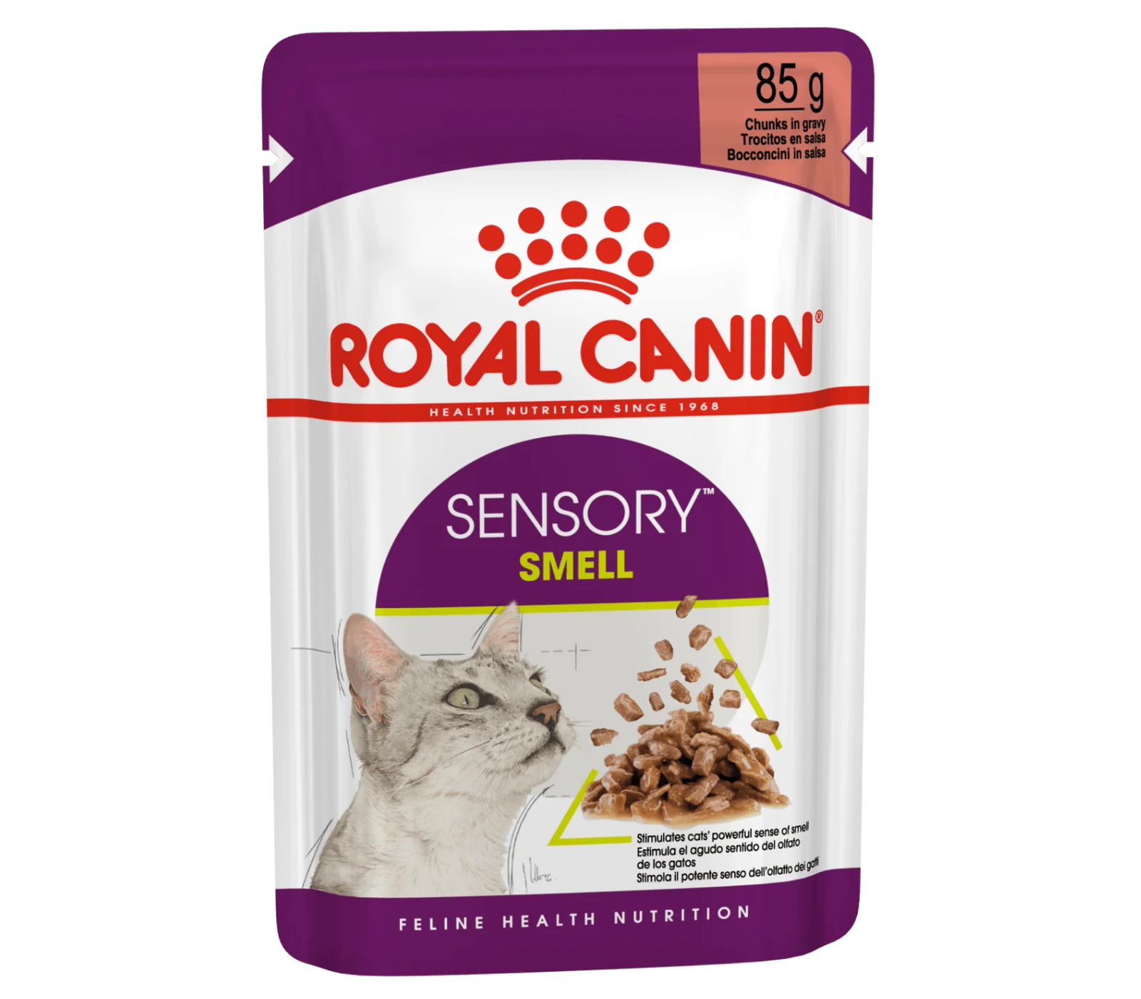 To accommodate each cat's unique preferences, ROYAL CANIN® Sensory Smell is also available with morsels in jelly, offering optimal flavoгr and texture variety. Additionally, other products in the ROYAL CANIN® Sensory range include Sensory Taste and Sensory Feel, each with its own appealing formula designed to stimulate your cat's appetite and provide a sensorial-rich feeding experience.