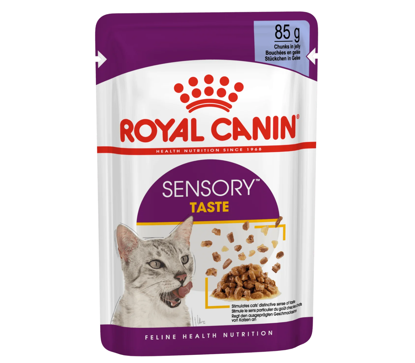 To cater to individual preferences, ROYAL CANIN® Sensory Taste is also available with morsels in gravy, offering optimal flavour and texture variety for a diverse and delightful feeding experience.