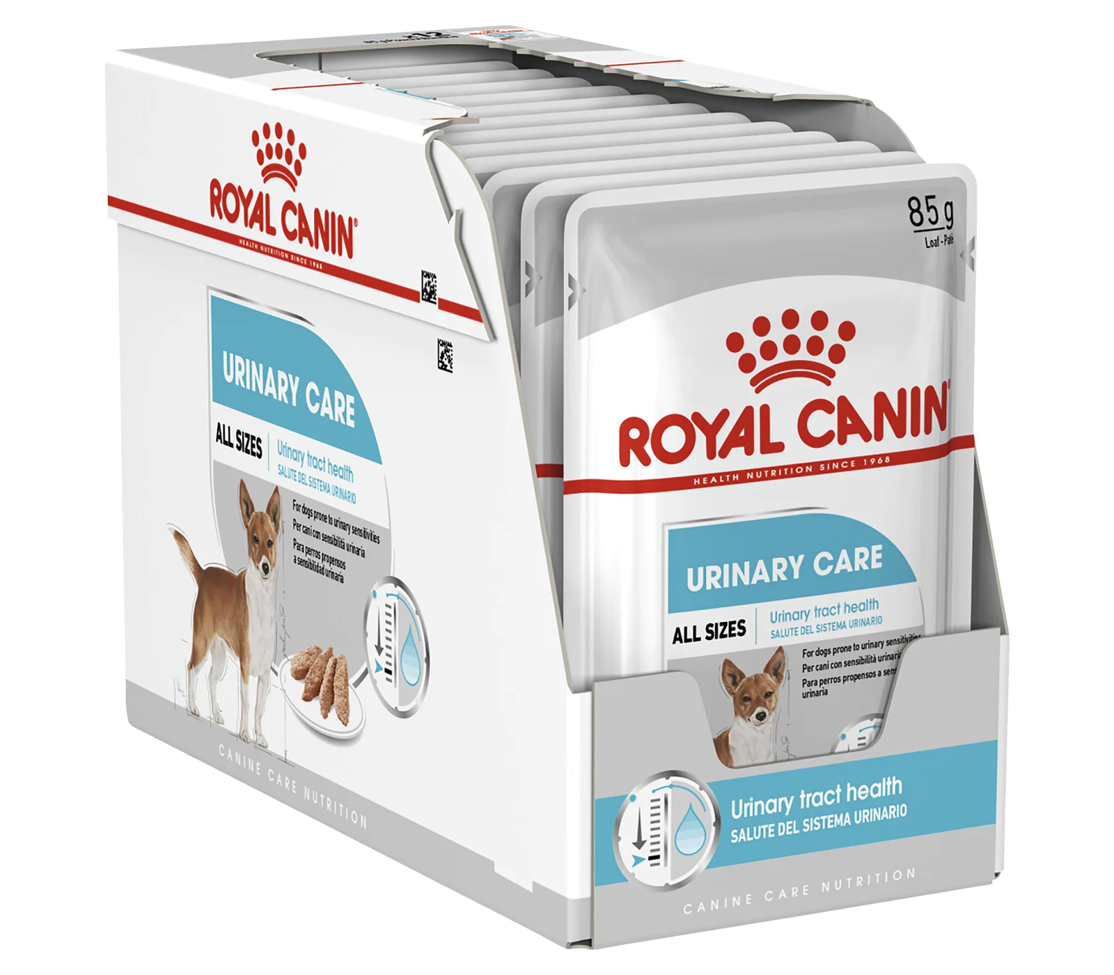 ROYAL CANIN® Urinary Care is available in multipacks of 85g pouches. To cater to your dog's preferences, it is also offered as dry food with crunchy and highly palatable kibble designed to encourage increased water consumption. If you decide to feed your dog a combination of wet and dry food, be sure to consult the on-pack feeding guidelines to ensure they receive the ideal portion of each.