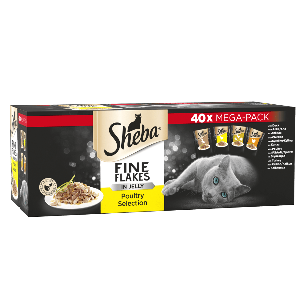 Sheba Fine Flakes in Jelly with Poultry Wet Cat Food 40 x 85g