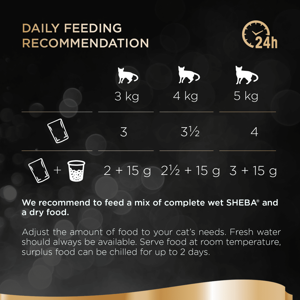 Give your cat the best with SHEBA® Fine Flakes cat food in gravy, the perfect choice to inspire moments of love and affection between you and your feline friend. Let their whiskers twitch with anticipation and enjoy their heartfelt appreciation as they savour every delectable bite.