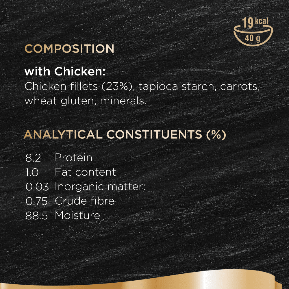 Treat your cat to a culinary adventure with our fine fish pieces in a velvety broth. Let them savour the delightful taste and relish every spoonful. This complementary pet food is perfect for enriching their daily meals and offering them a moment of pure bliss.