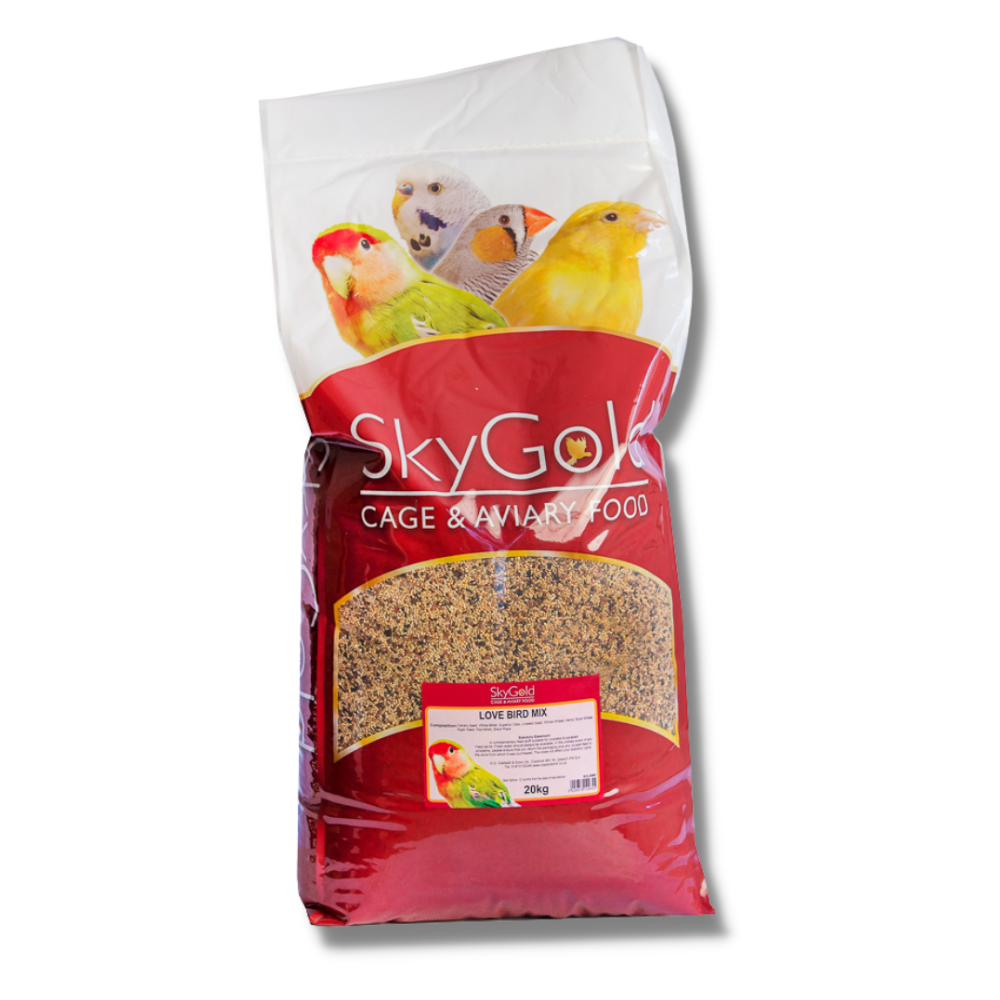 SkyGold Love Mix in a 20kg package offers a classic blend comprising a combination of both classic and specialized seeds tailored for lovebirds.