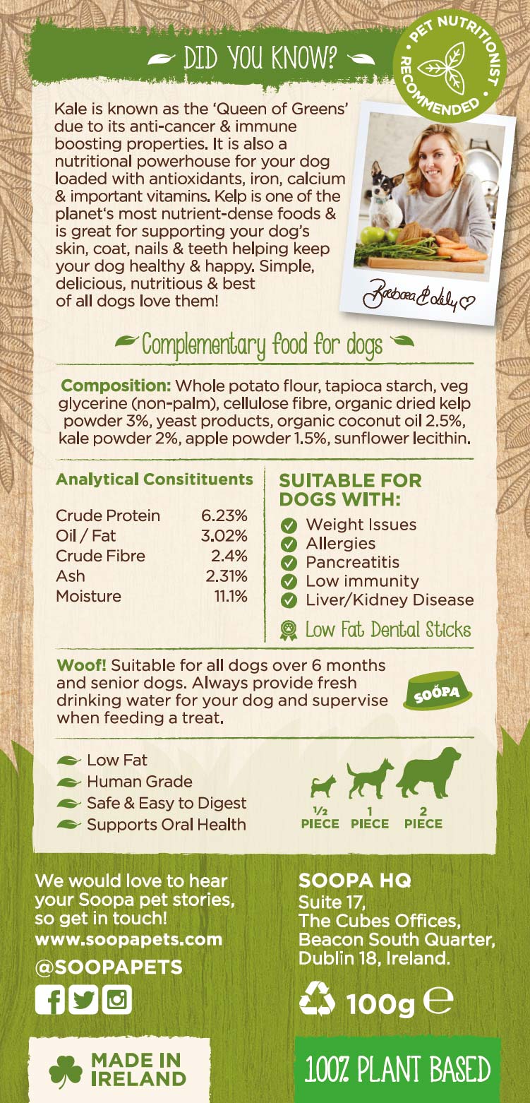 Soopa Single Pack Kale and Apple Dental Sticks for Dogs 100g
