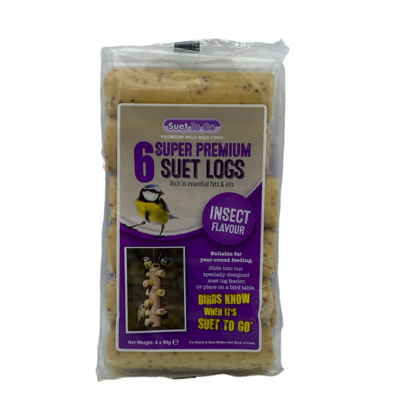 Suet to Go Suet Logs Insect Flavour Bird Food 6 x 90g