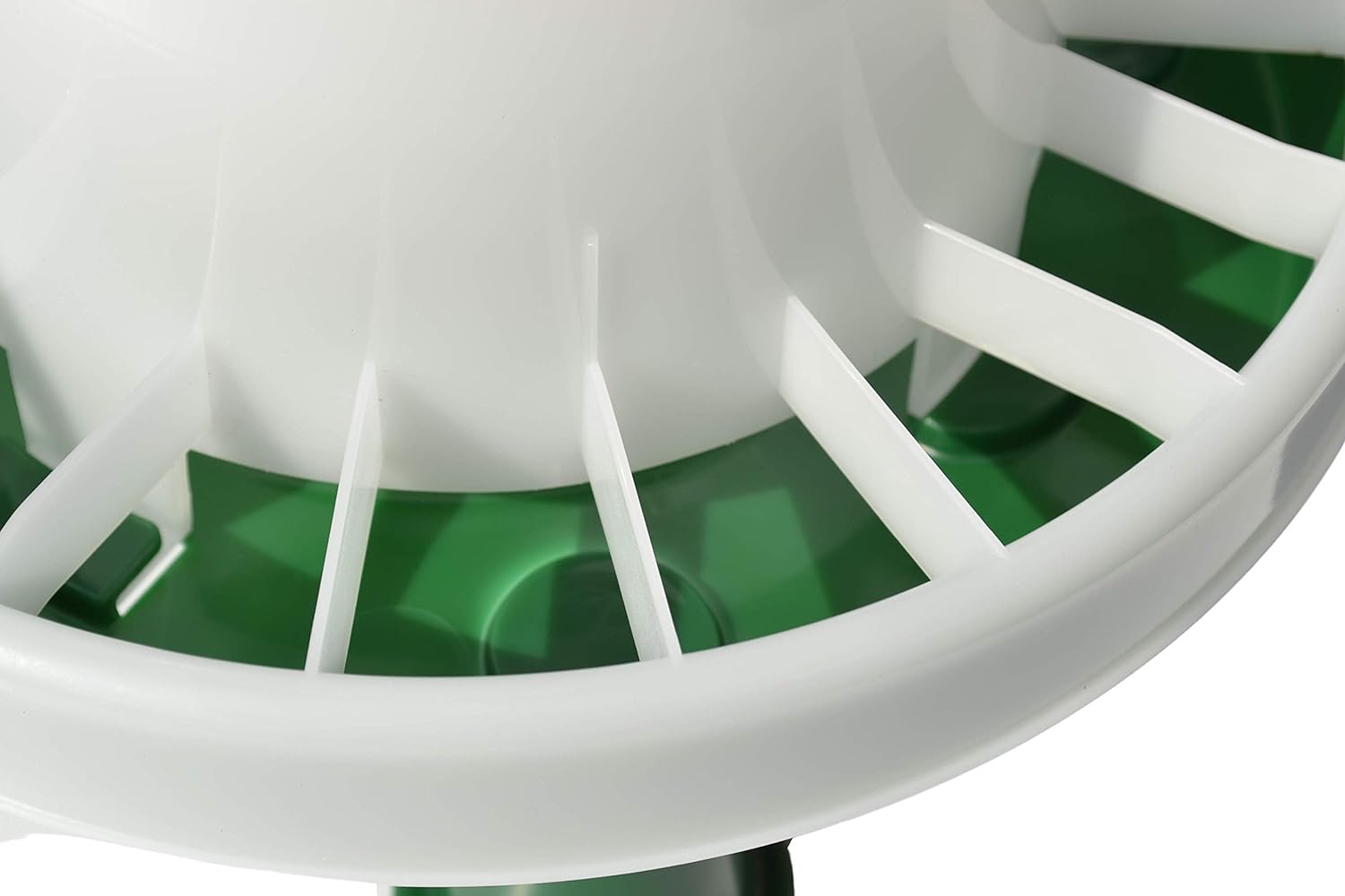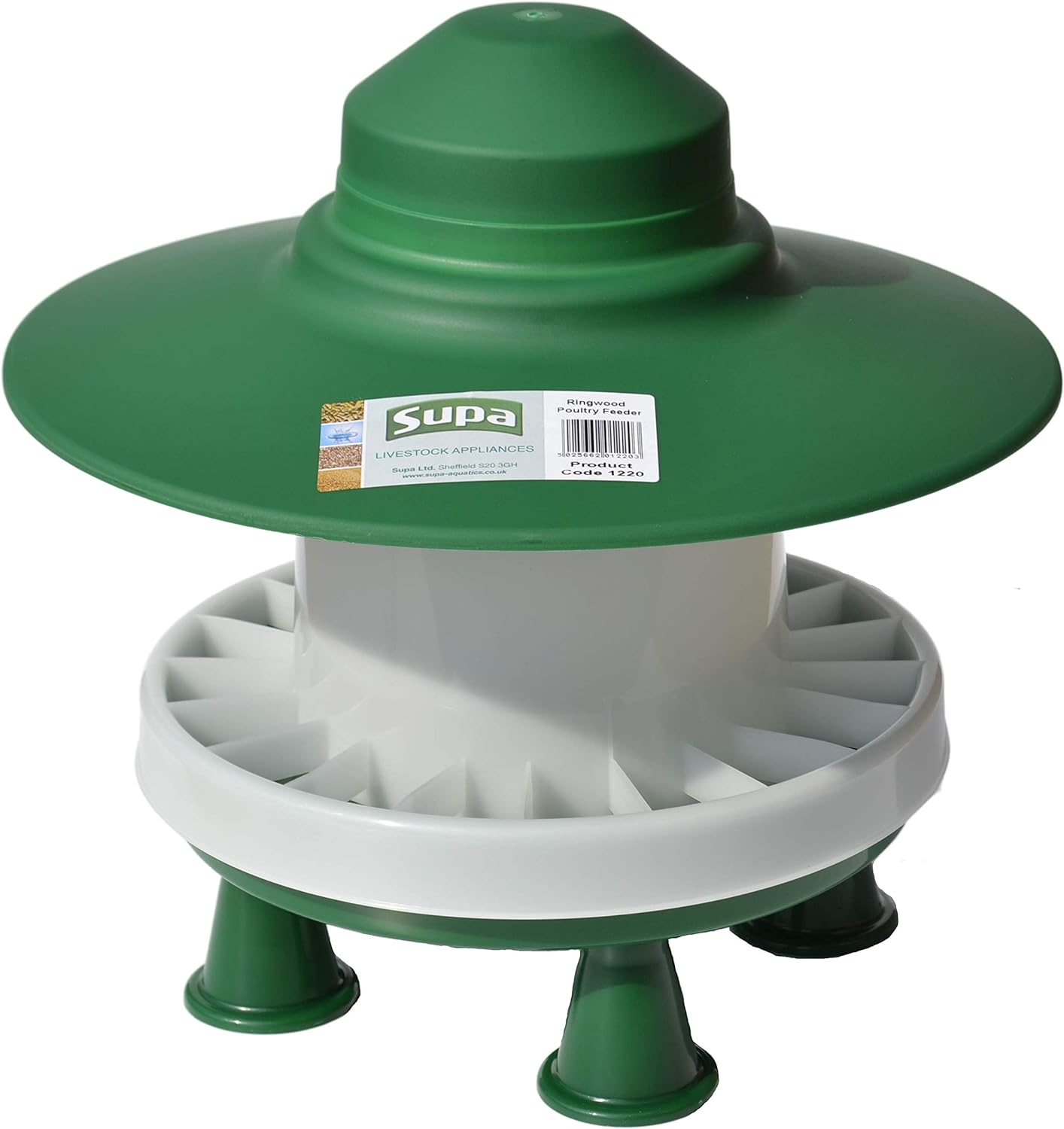 The Ringwood feeder is a convenient solution for small flock keepers, offering a capacity of 2.5kg to meet their needs. Designed with integral fins, this feeder minimizes waste by reducing food flicking when birds eat.