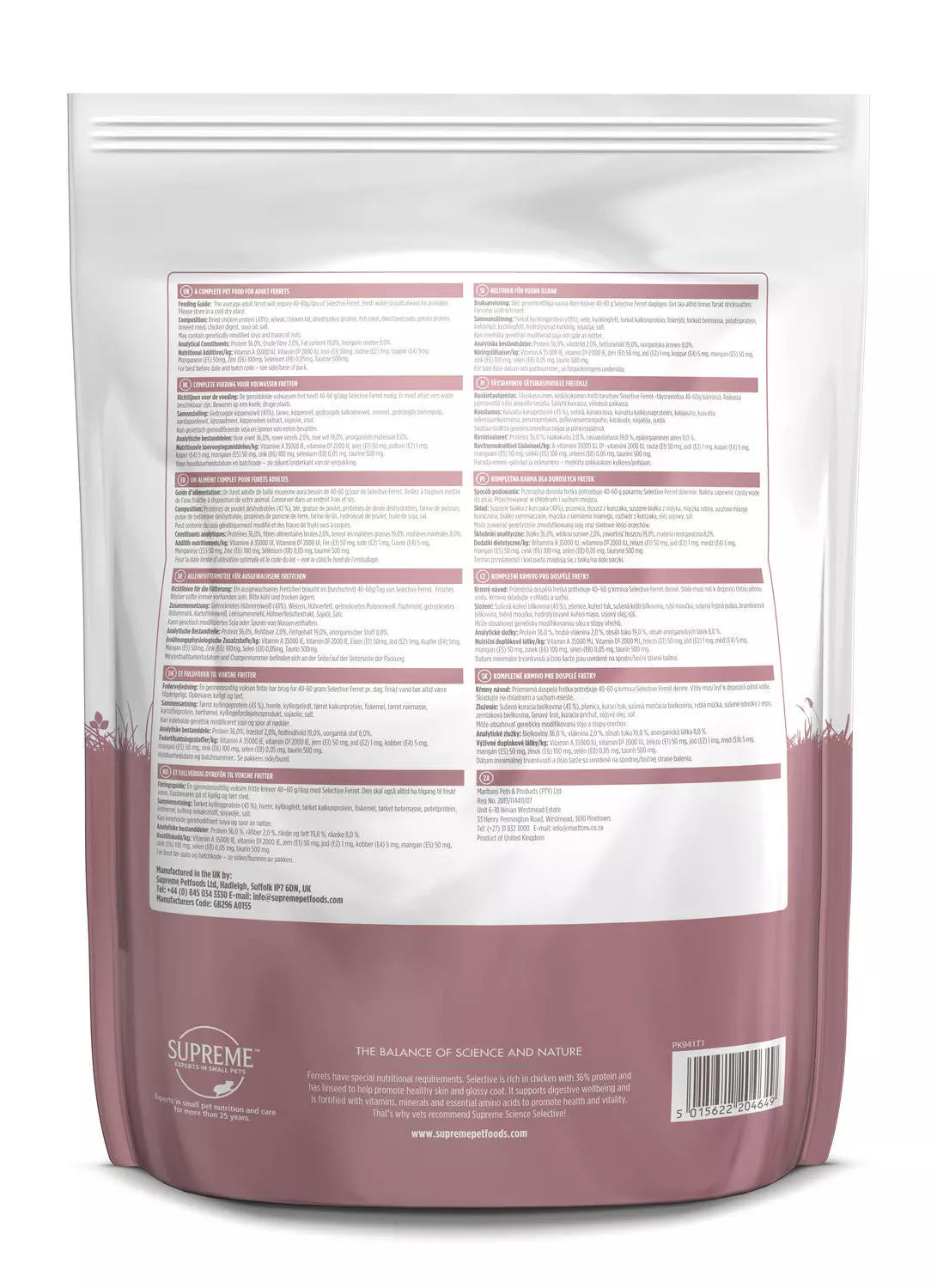 Supreme Science Selective Ferret is created from a blend of high quality ingredients formulated to provide a nutritionally complete and balanced diet. Selective Ferret guarantees your animal will get all the protein, oils, vitamins and minerals it needs in every nugget; Ensuring the health and wellbeing of your ferret
