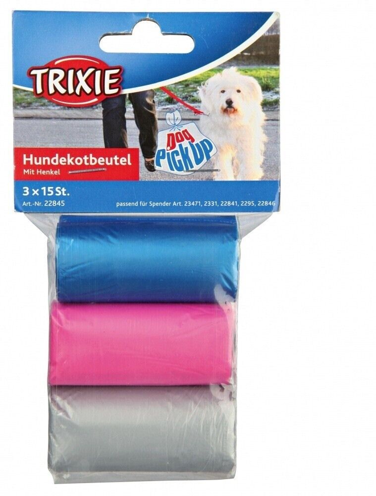 Trixie Dog Poop Bags with Handles 3 rolls of 15 bags