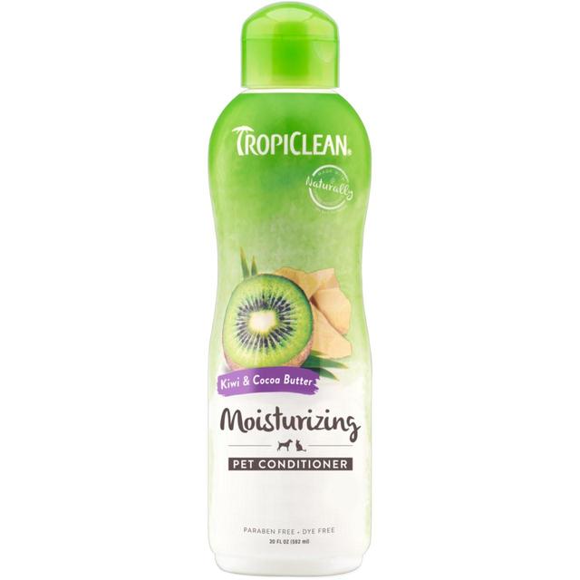 Tropiclean's advanced conditioning formula with intensified moisturisers soothes dry, sensitive skin. Rich botanical conditioners create a healthy sheen. Eliminates static and tangle, leaving the coat soft and easy to comb. Fresh, kiwi smell.
