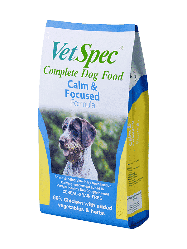 VetSpec Calm & Focused Formula is a unique super-premium dog food that combines the effectiveness of the Calm & Focused Supplement with the VetSpec Healthy Dog Adult formula. This cereal-grain-free formula is designed to address anxiety, over-excitability, separation anxiety, and fear of loud noises such as fireworks in dogs. It is also beneficial for training young dogs to improve focus and obedience.