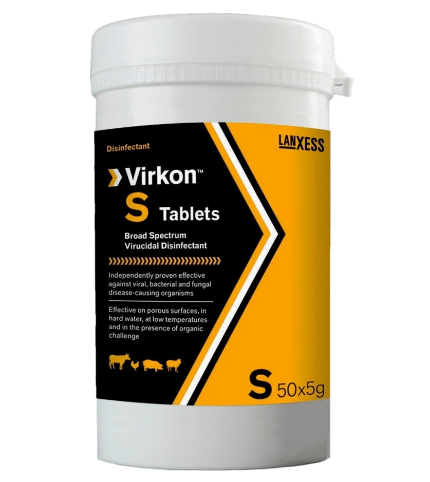 Virkon S Tablets have been selected and recommended by experts and government agencies worldwide. They have an excellent safety profile for both humans and animals when used and disposed of according to the instructions on the label. Each tub contains 50 x 5g tablets, making them convenient to store and use as needed.