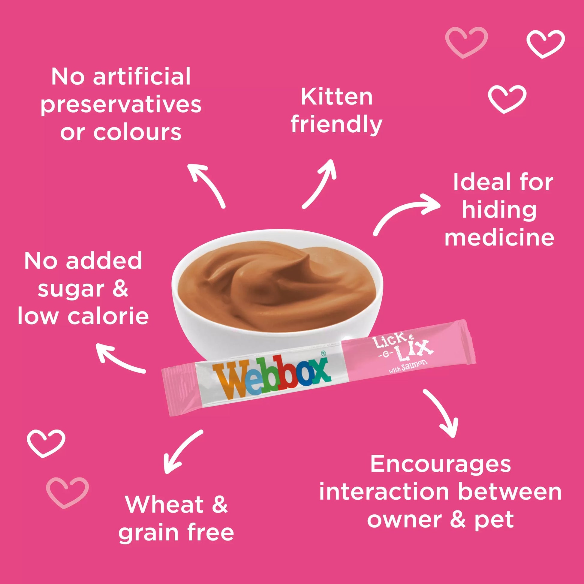 These nutritious and irresistible sachets are the perfect daily treat for your cat. Indulge your furry friend with a lick or two, and watch as they lap up every bit of this yummy delight. Once your cat experiences the goodness of Webbox Lick-e-Lix with Salmon and Omega 3 & 6, they'll be coming back for more every day! Treat your cat to something special and see their purrs of joy in return.