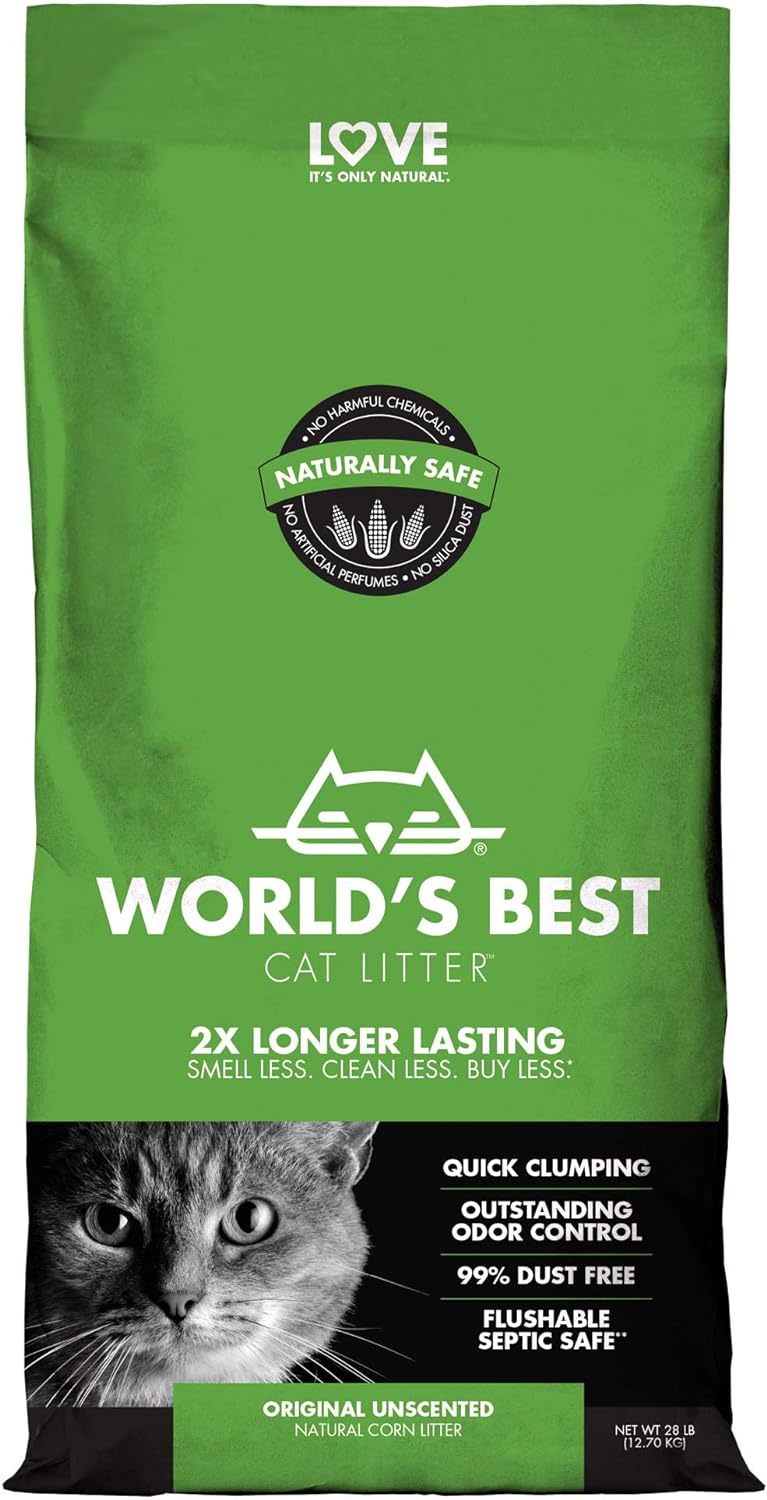Discover the superior performance of World's Best Cat Litter Original, a premium clumping cat litter engineered for easy scooping and tight clump formation. Unlike conventional litters, its lightweight composition, derived from sustainable corn and devoid of chemical additives, guarantees safety for both humans and feline friends, while championing environmental sustainability. Additionally, its flushable nature has been rigorously tested to ensure compatibility with sewage and septic systems, offering convenience while minimizing waste.